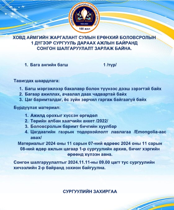 НЭЭЛТТЭЙ АЖЛЫН БАЙР